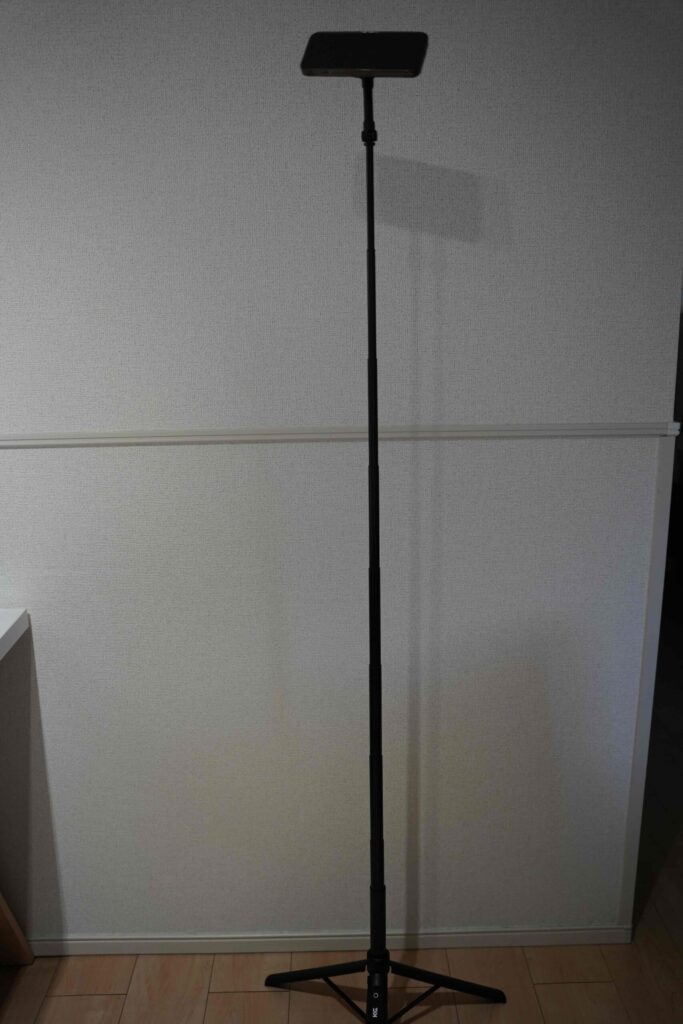 それは伸ばしすぎると画角が安定しない点だ。三脚部分が短いから軸が長くなって、振り子みたいに揺れる。室内ならそっとセットすれば大丈夫だけど、屋外で風が吹いていたら安定した撮影が難しい。外で撮るときは、最大まで伸ばすのではなくて適度な長さにするのがいい。