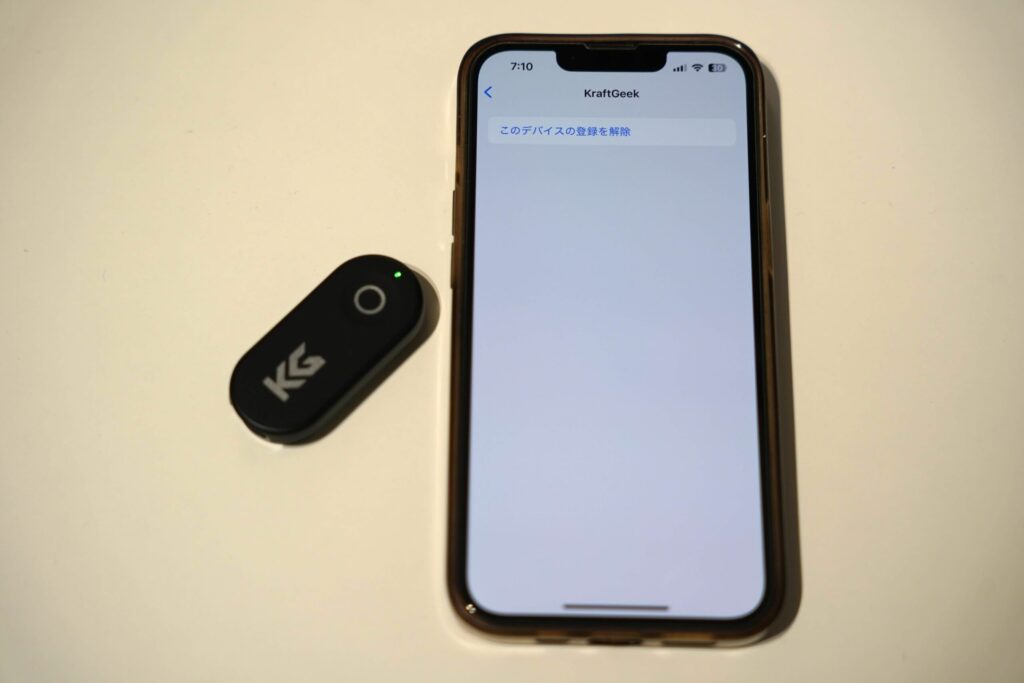 JustTap Tripodは三脚だけだと思いきや、リモートシャッターまでセットで付いてきた。リモートシャッターをスマホのBluetoothに接続すれば、三脚の自撮りが簡単に撮影できる。