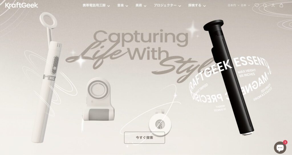 これなかなか面白くて、三脚とか自撮り棒を出しているブランドっていくつもあるんだけど、だいたいカメラとかスマホアクセサリーに寄った商品展開をしている中で、KraftGeekは「スタンド」に特化してラインナップしている。