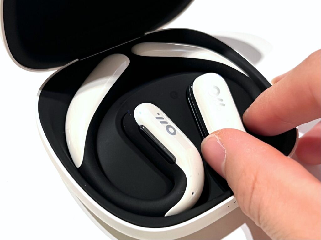 OWS Proはタッチセンサーではなく物理ボタン方式。どちらが良いかは好みもあるけど、個人的には物理ボタンが好み。理由は物理ボタンはプッシュ感があって、押し間違いやエラーが起こりにくいから。